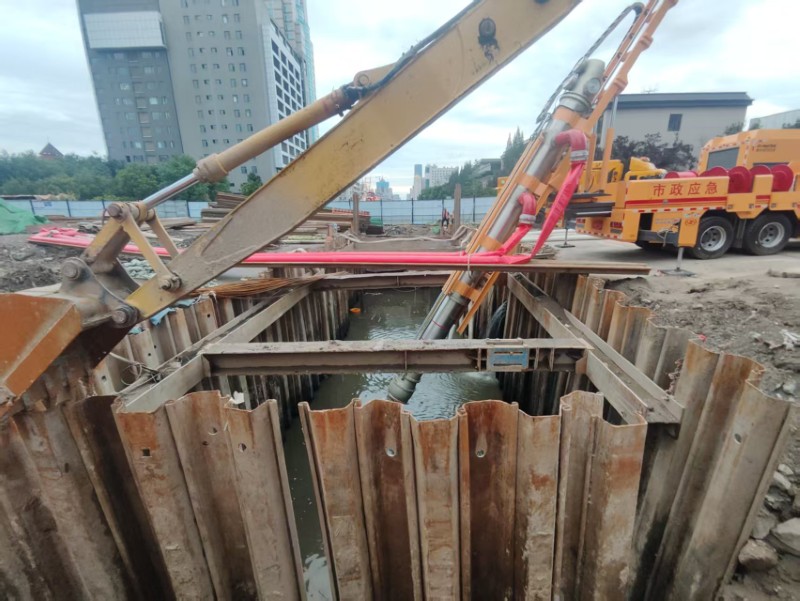 施工中,項目部嚴格執行雨季施工規范,強化質(zhì)量管控,保證節點(diǎn)目標。組織技術(shù)人員在管道基礎澆筑前檢測地基土壤含水率,超標區域立即采用級配砂石換填處理,管道安裝完成后48小時(shí)內完成閉水試驗;質(zhì)檢員堅守施工一線(xiàn),對每一道完成工序進(jìn)行嚴格驗收檢測,確保質(zhì)量達標。重點(diǎn)針對府西街口功能性現狀管道,項目部制定實(shí)施“防護—監測—應急”專(zhuān)項方案,施工前通過(guò)專(zhuān)業(yè)設備排查管線(xiàn)并繪制參數詳圖,施工中設置安全防護區嚴防誤碰,對穿越區段管道采用型鋼支撐與防護包裹雙重加固,同步建立專(zhuān)人監測機制,跟蹤變形、滲漏及沉降數據,保障舊管線(xiàn)運行與施工安全。